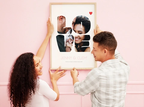 Print a love photo album in portrait or XXL version, a romantic poster, a personalized frame, a photo memory box or even a DIY album to decorate together: each product is a beautiful way to celebrate love, memories, and those small moments together 💑.